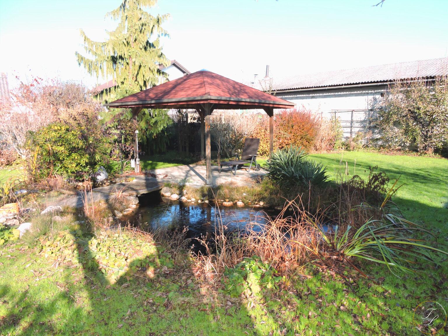 Heiße Sommertage genießt man genussvoll im Pavillon mit Blick auf den eigenen Teich und der idyllischen Gartenanlage.